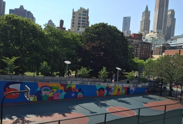 The Court Wall Mural adds color and flair to Washington Market Park.