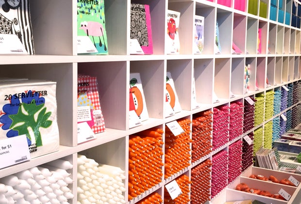My kids went right for the goldfish pencil sharpener, the light-up lipstick pen and the 40-page activity book for two bucks. I stocked up on $3 painting canvases, stickers and $1 packs of dinner napkins that come in a dozen different designs, from sliced red onions to cupcakes to panda bears. There's also a huge variety of clever storage ideas—you'll be thankful for the friendly staff, eager to help you figure it all out.