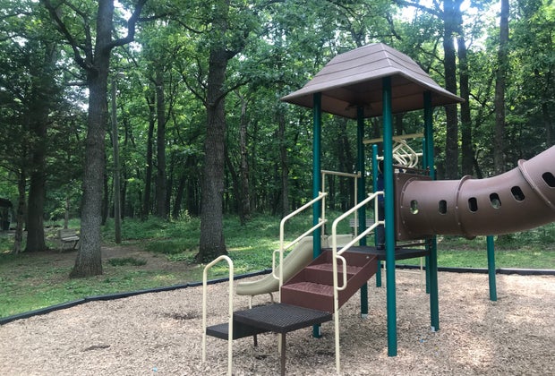 Run around at the playground at Hillendale Park, a picturesque woodsy-scene for play and picnics.