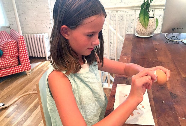 - Stick two to three small birthday candles into the small end of one of the peeled eggs. Make sure they are securely in place, but not pushed in deep enough to make the egg fall apart.