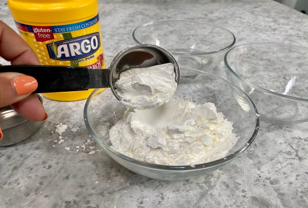 Slowly mix the cornstarch into the water, working to get the right consistency.