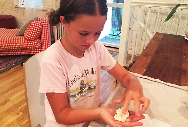 Knead all of the curds together into a ball of "dough." This is your fancy casein polymer.