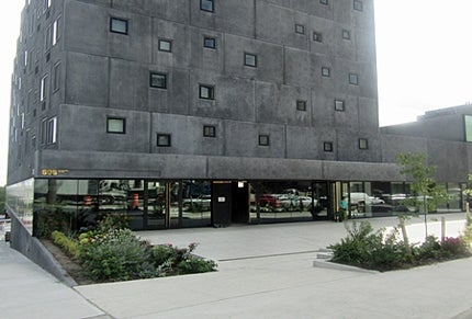 The children's museum is located on the basement level of this new Sugar Hill housing complex.