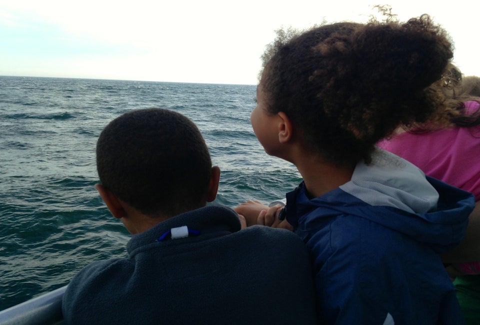 As the boat approaches the location of the whales (usually at or near Stellwagen Bank Marine Sanctuary), everyone tries to find a good viewing spot out on the deck. The crew asks adults to yield the front-row spots along the handrails to the kids, which not only makes sense, is also really nice.
