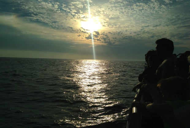 6. Consider taking the evening (5pm) cruise. We got a tip from one of the crew members that the later whale watches are the best because the crew already has the coordinates for where the whales are located that day. Plus, you get a gorgeous sunset and are greeted by the glittering Boston skyline when you return from your adventure.