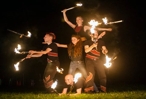 Marvel at the choreographed fire-juggling, fire-eating, sword fighting talents and comedic antics of the group A Different Spin. Friday through Sunday