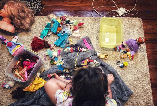 Organizing and sorting toys for donation is a great way to spend some indoor downtime.