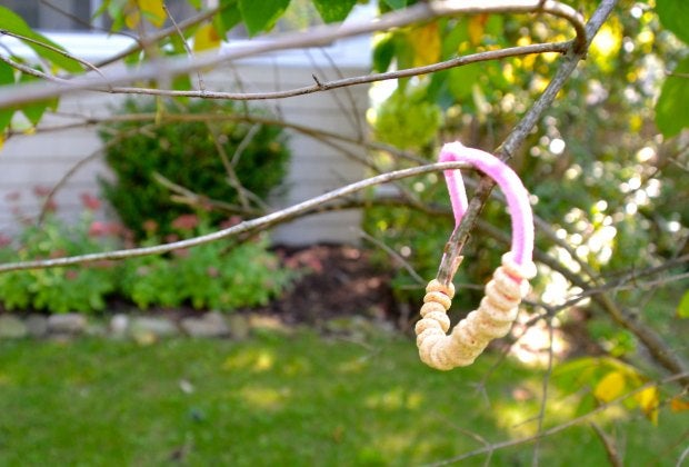 When the temps fall below freezing, these beautiful sun catchers can be made completely outdoors. All you need is some outdoor treasures like sticks, berries, or leaves to make a frozen sun catcher. Food coloring makes a pretty addition, too. When the temperature isn't quite low enough, they can be frozen in the freezer, and then hung in the trees outside.