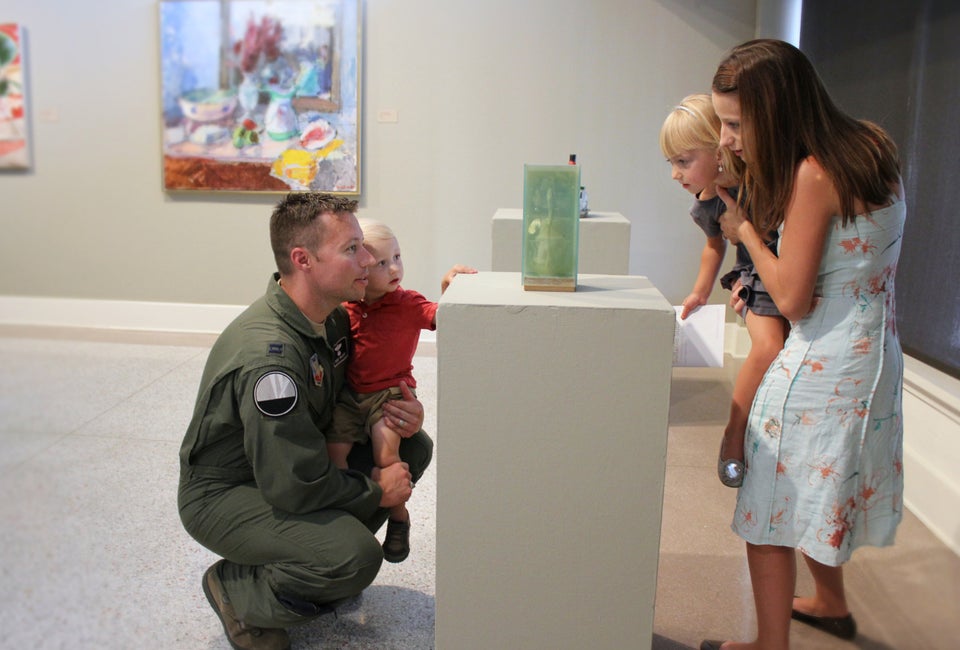 Top photo shows The Brower family from Dyess, AFB visiting a Blue Star Museum. Photo courtesy of the Grace Museum