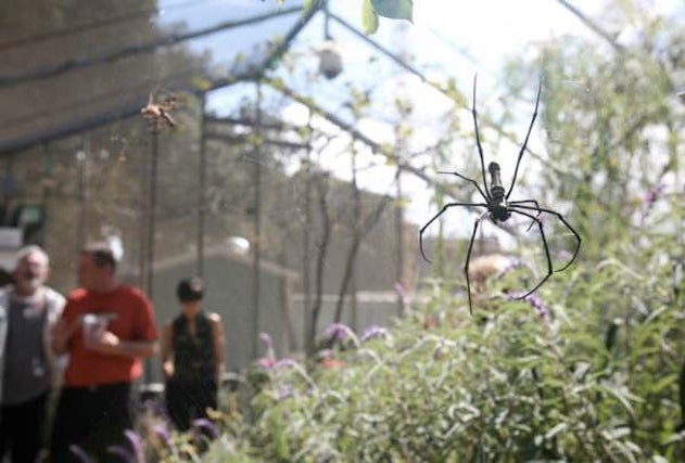 Hundreds of spiders weave intricate webs on the lawn of the Natural History Museum.