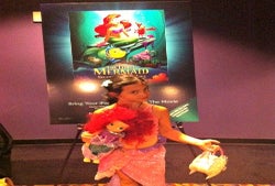But as the mom of an eight-year-old who exclaimed, "That was awesome!" after a recent Little Mermaid Second Screen Live screening, I've got to tell you, I felt the same way. It was like Rocky Horror for families with a digital twist. (As you can see from the photo, my daughter even dressed up.) And since it's very interactive and requires kids to read directions and complete challenges, it's much more stimulating than your average cinema outing.