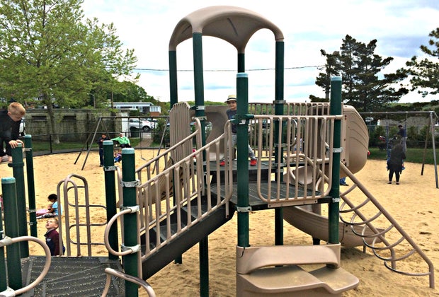 Enjoy a fully fenced playground at Cow Harbor Park.