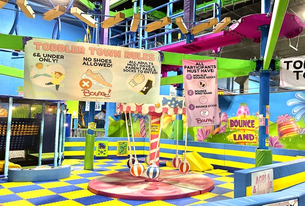 Bounce! is an ideal family-friendly trampoline destination for kids of all ages. Kids can navigate zip lines, a ninja net course, climbing structures, trampoline dodge ball, bumper cars, and more.