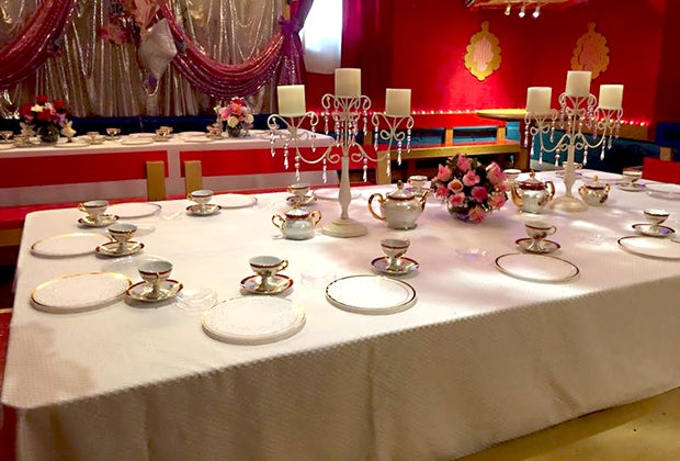 Standard puppet show themed party packages are available (1.5 hours, up to 12 children, show, invites, pizza, paper goods and more). Upgraded packages include deluxe, princess, princess and pirate, hero and royal tea party. The princess, pirate, hero and royal tea parties are two-hour celebrations that include a costumed character, storytime, dancing, games, glitter, and more. The royal tea party adds a regal touch with linens, treats, and a porcelain tea set. Guests are encouraged to dress in royal attire for the full effect. Of course, there are custom add ons, including pinatas and even marionette party favors so your guests can perform their own puppet show at home!
