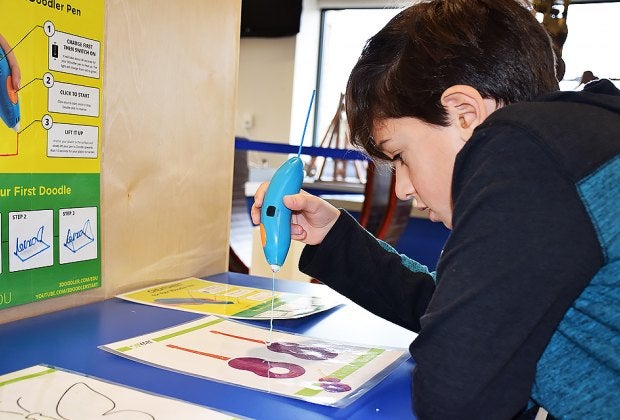 Kids can create 3-D artwork at the Long Island Science Center. Photo by Jaime Sumersille