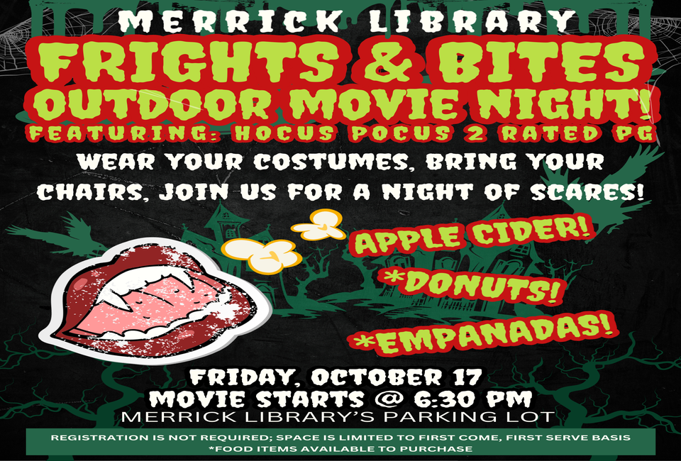 Frights and Bites Outdoor Movie Night at The Merrick Library