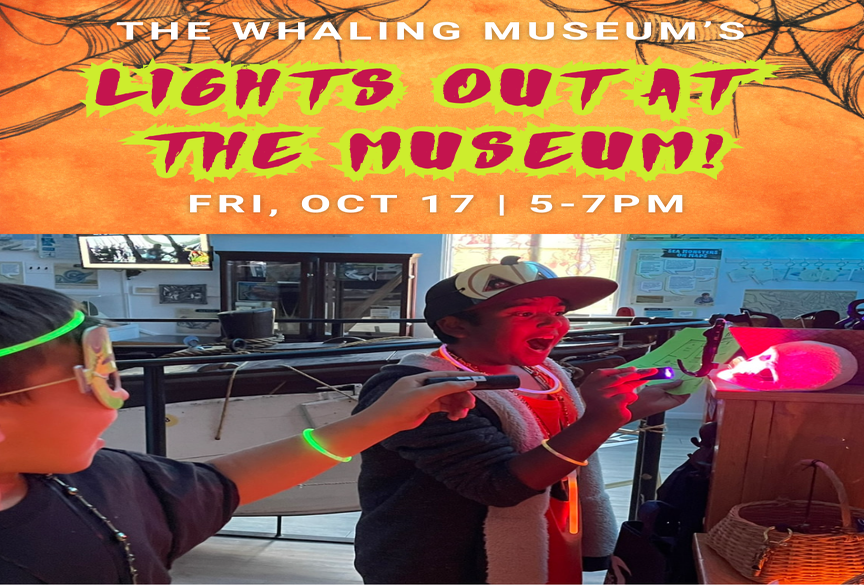 Lights out! Experience the museum in a whole new way - in the dark at The Whaling Museum. Visitors can use a blacklight flashlights to hunt for glowing skulls hidden in the shadows of our darkened exhibits. Find them all and win a prize. Then enjoy some glow-in-the-dark crafts in this workshop to brighten up your night.