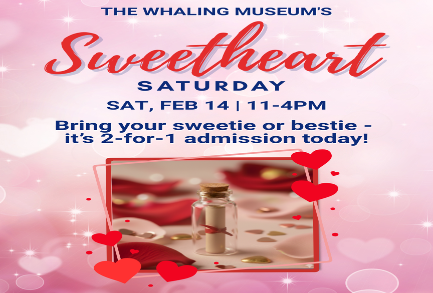Bring your sweetie or bestie - it’s 2-for-1 admission at The Whaling Museum. All visitors can create a “love-message-in-a-bottle” charm to wear.