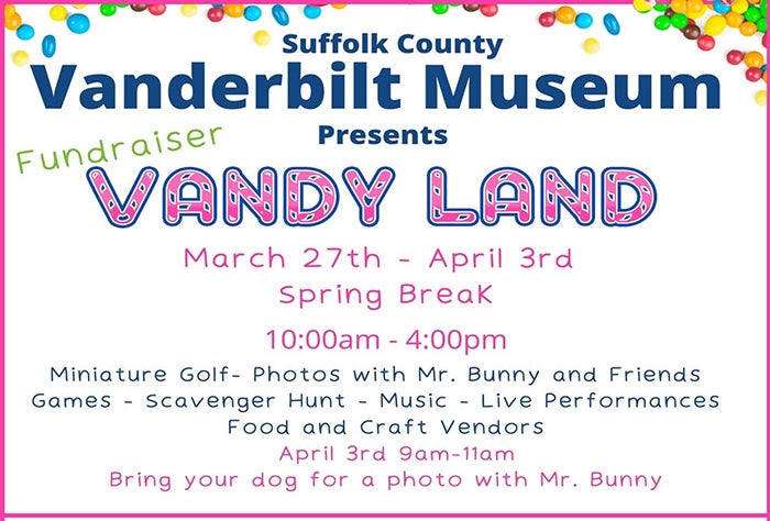 The Cold Spring Harbor real-estate firm Lucky to Live Here has invited the Vanderbilt to be part of its annual Huntington Egg Hunt Trail, this year a contact-free event. The final egg (made of wood) will be hidden on the Vanderbilt Estate, where it becomes part of the Vandy Land scavenger hunt.