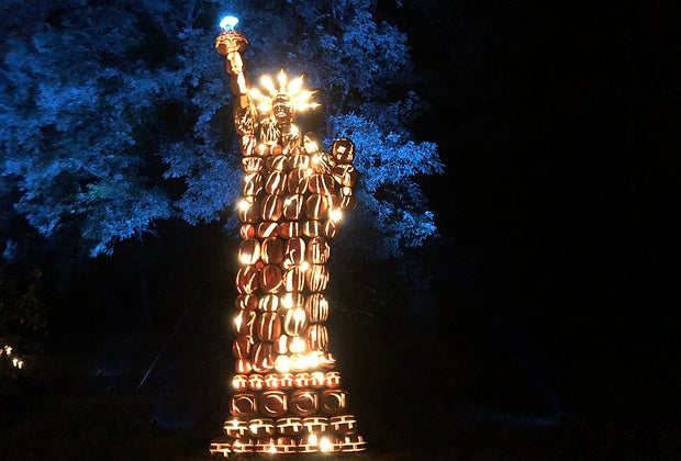 See Lady Liberty in jack-o-lantern form at the Great Jack O'Lantern Blaze at Old Bethpage Village Restoration. Photo by the author