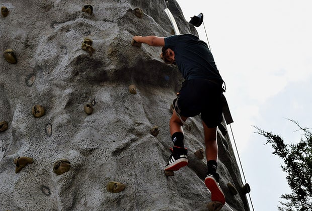 Children 45 inches or taller can roam the Eye Opener solo, but those under 45 inches must be accompanied by an adult. The separate admission fee also includes four climbs on the rock wall, which is adjacent to the Eye Opener. There are four harnessed areas on the wall for climbing, each with varying difficulty levels.