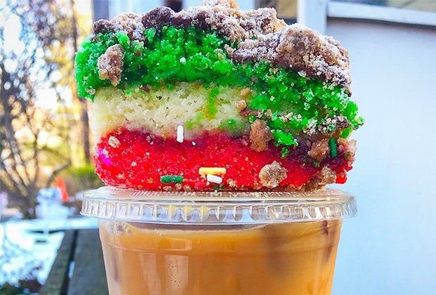 Top off the day with a rainbow crumb cake or any other delicious dessert at Sweetie Pie's on Main. Photo by eating_longisland via Instagram.