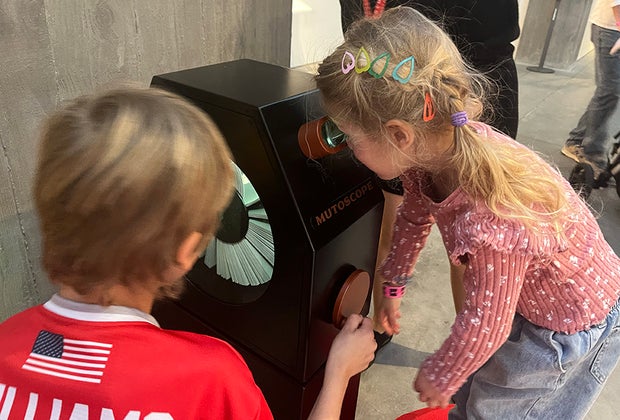 The Oscars Experience presented in the East West Bank Gallery has got to be the most raved about attraction at the Academy Museum of Motion Pictures–not to mention a really special one for kids. If you’ve ever dreamed of holding an Oscar, the museum invites you to experience winning an actual “gold guy” and giving your acceptance speech, of course. Simply type your name into a computer–along with an email address, so you can receive a video of your speech–and wait for your name to be called. My kids loved pretending to achieve their dreams (and, admittedly, so did my husband.) This experience is also always free for kids 17 and under with admission, and costs $10 per adult. Same-day general admission is required.