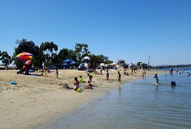 This beach on a marina, which can be seen from the 2nd Street Bridge as it crosses to the Naples neighborhood of Long Beach, is cherished among moms for its clean sand and ample calm, shallow swimming area. Boats, paddle-boarders, and personal watercraft riders pass beyond the buoy line, adding to the scenery without disrupting the peacefulness. A top-notch playground with sand play area, climbing rock, and lots of other equipment are welcome accompaniments to the water play.