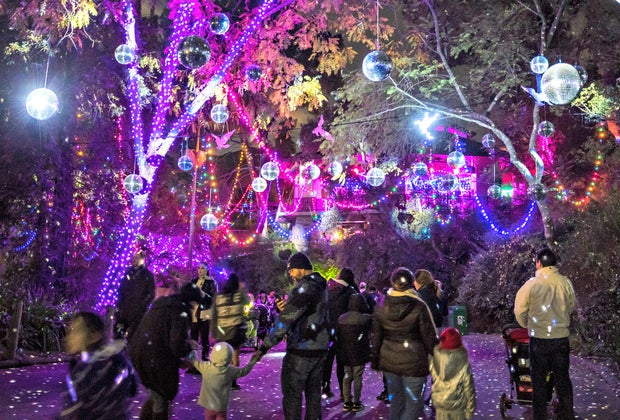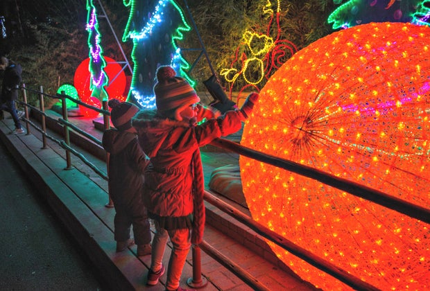 Be sure to bring a camera, of course, since numerous photo ops are scattered throughout the zoo. Kids can pose next to Christmas trees, Kwanzaa candelabras, and Hanukkah menorahs.