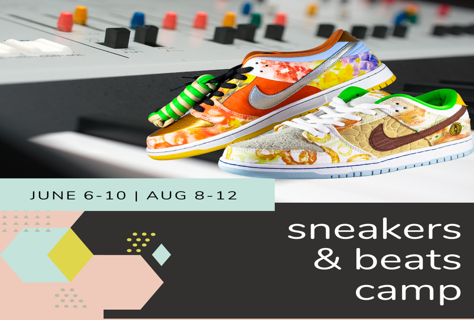 This exciting camp explores the art of all things sneakers, beats, and everything in between. Campers work through the sneaker design process as they develop a concept, explore material and color swatches, design and laser cut a logo, and embellish with colored laces, paints, stones, and more.