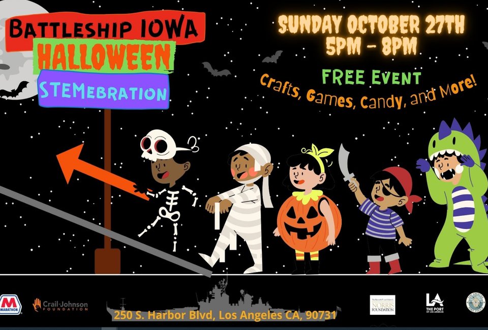This Halloween season, Battleship IOWA welcomes guests on board to enjoy STEM stations, craft stations, a spooky reading corner, and games.