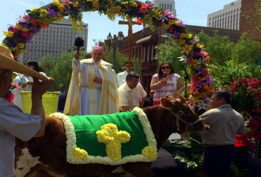 The Saturday before Easter Sunday, families can bring their pets to be blessed. This centuries-old tradition, blessing the animals for the benefits they provide mankind, has been celebrated in the Plaza since 1930. All pets are welcome.