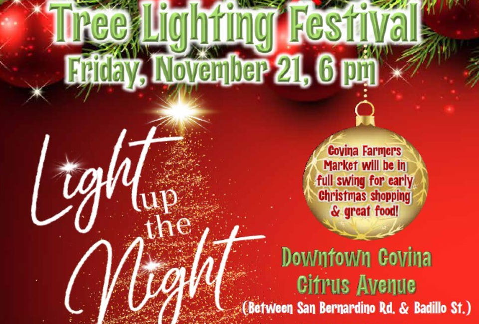 The official Covina Tree Lighting Ceremony is held in Downtown Covina at 6pm.