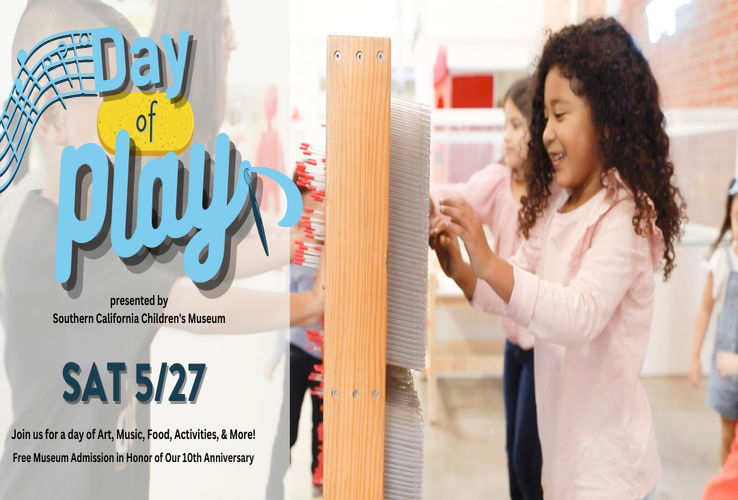 In celebration of its 10th anniversary, Southern California Children’s Museum hosts its first-ever free community play day. At Day of Play, everyone is invited to engage with the power of play through arts-based activities, musical performances, and social services information from community service tabling partners.