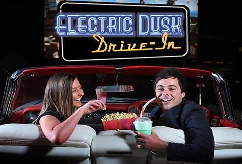 Electric Dusk Drive-In offers two options for movie viewing: in your car or sitting on a lawn chair in the Astroturf section. Movies are shown on a giant inflatable screen.