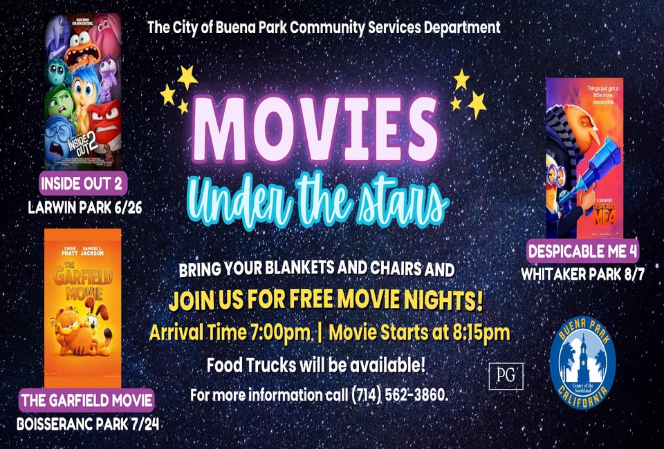 Families can gather in Buena Park's parks for free movies under the stars.