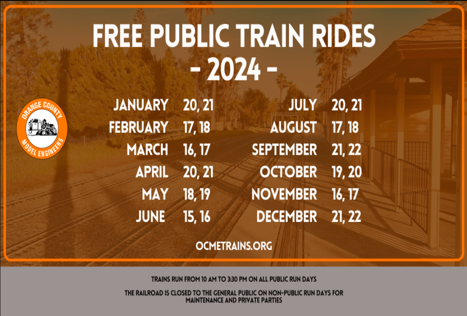 Orange County Model Engineers offers free train rides to families on the third weekend of every month.