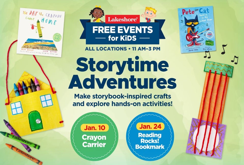 Kids can get creative at an afternoon of hands-on activities at Lakeshore Learning stores.