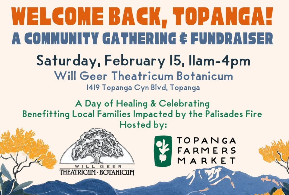 There is also a marketplace featuring local shops and Topanga Farmers Market vendors, with sales benefiting families and businesses impacted by the Palisades Fire.