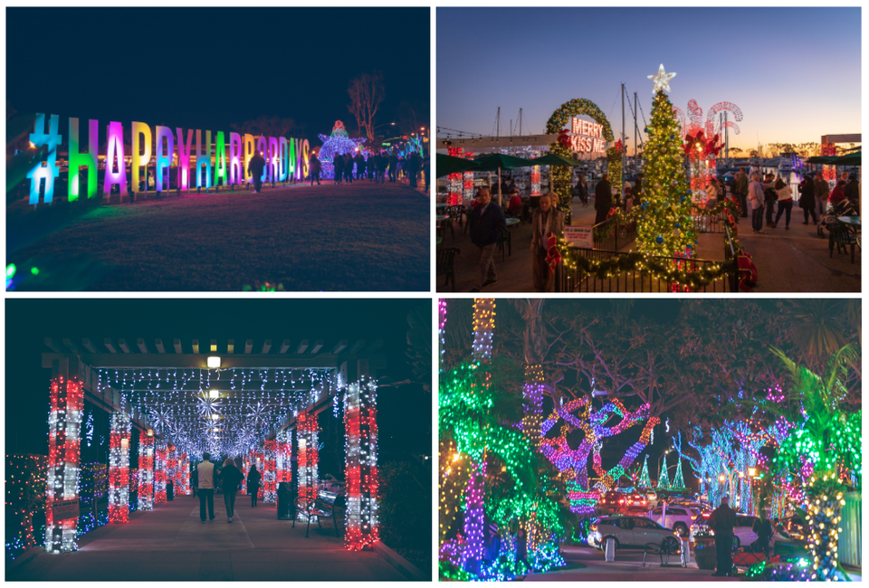 Families can stroll through Dana Point Harbor to experience the voluminous free public light displays, including themed light creations Candy Cane Lane, the “Merry Kiss Me” arch, lighted trees, and more.