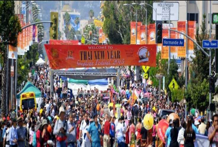 The Songkran Festival / Thai New Year celebration is located on Hollywood Blvd between Western Ave and Normandie Ave in Thai Town, the cultural hub for the Thai-American community in Los Angeles.