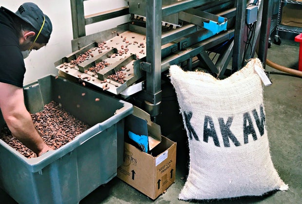 Our tour guide, Brett, did a great job schooling us in Chocolate 101. He is also the company's current production manager, so he really knows the ins and outs of chocolate making. The level of detail he shared about this process was more aimed at the adults in the crowd than the kids—including explanations of how chocolate is fermented and dried, and the differences between ChocXo's cacao beans vs. the inexpensive bulk ones used by chocolatiers like Hershey and Nestle. Truth be told, my kids' eyes glazed over a bit during this talk, and there was at least one case of the wiggles. But to be fair, our tour was mostly adults, with just one teenager and my kids, ages four and seven.