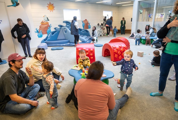 Filled with brain-building sensory and developmental experiences for babies and toddlers, the interactive indoor playground is now welcoming crawlers and early walkers to play, climb, explore, and connect alongside their parents and caregivers. My 20-month-old couldn’t get enough of the eye-catching rain mobile and the easily-scalable stream climber structure, and I loved that the area was so safe and engaging for little ones that I could actually get in some conversations with other adults.