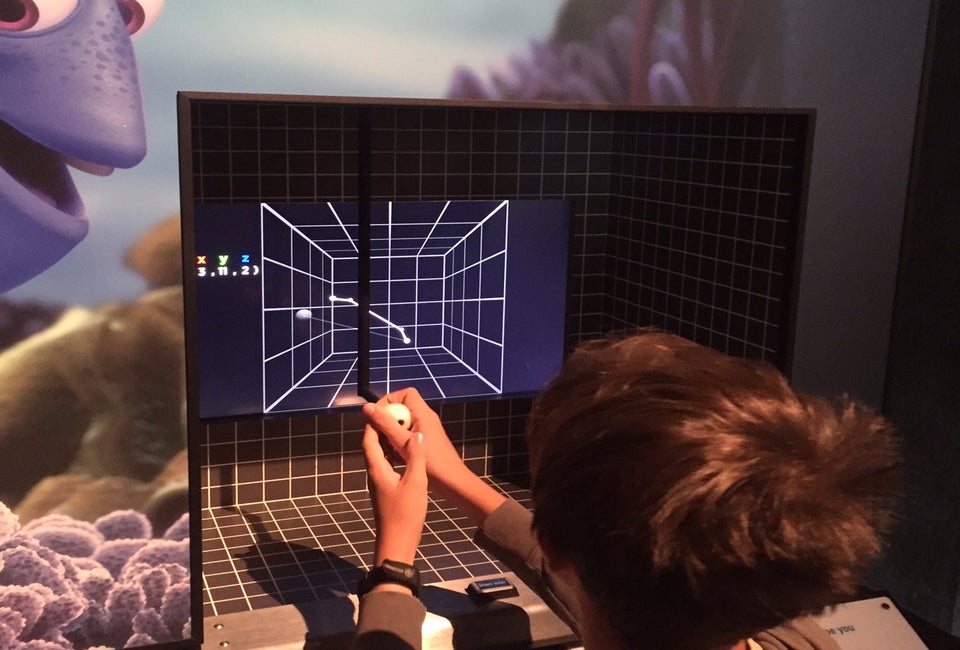 While the familiar faces of The Science Behind Pixar are sure to attract the preschool and early elementary crowd, it is older kids who enjoy and learn the most at this exhibit. Kids in grades four and up not only know the movies; they also have been introduced to many of the math, art, and computing concepts at school, and they can appreciate seeing how it all comes together to create what they've watched. My middle school son especially enjoyed the “Sculpt by Numbers” station, where he was able to draw a cube onscreen using a coordinate geometry system—combining the x, y, z grid system he has learned in math with 3D drawing he has done in art classes.