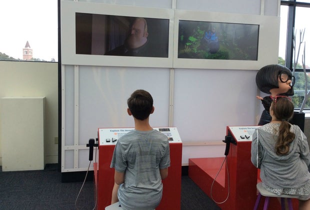 Each area begins with a video featuring Pixar production employees who explain what they do and how they became interested in this part of the process. After the video, guests move on to physical activity stations—building robots, adjusting light to create different effects, moving cameras to change the viewpoint, etc—and then to computer stations where they can explore how 3D images are drawn and scenes designed to replicate the physical realities they've just manipulated. By the time they finish each activity, kids not only have a clear picture of how the movie effect is achieved; they also have a sense of how math, science, and art are working together every step of the way.