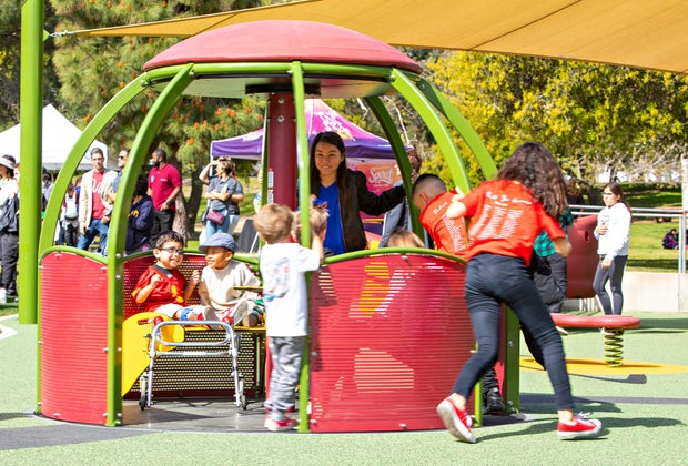 For those not familiar with it, Shane's Inspiration opened in 2000 as the first all-inclusive and universally accessible playground in Los Angeles. It is located in the center of Griffith Park near the Merry-Go-Round and just up the road from the Pony Rides and the Griffith Park & Southern Railroad. Shane's is vast—the kind of playground where you can spend the better part of a day, with picnic tables nearby for easy eating on the go. (There are bathrooms here, too, with a large outdoor sink that is usually stocked with soap.) The playground features a number of great play structures for kids of all ages, and the feeling of all-inclusiveness has not changed with the renovation. Here is what has: