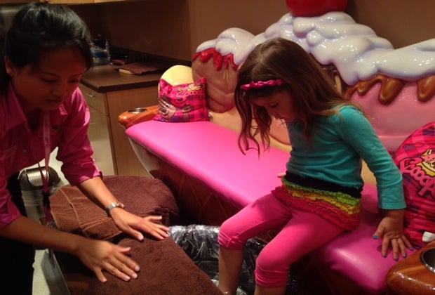 This ice cream-themed kids spa is conveniently located in the family-friendly Great Wolf Lodge Resort. Your daughter will love choosing her own “flavor” lotion and body scrub–chocolate, vanilla, or strawberry–while she kicks her feet up in a sundae-inspired chair. Each nail treatment comes with a bottle of non-toxic polish to take home for touch-ups, as well as a voucher for a free ice cream cone following your service. Parties are an option, too. You don't need to be staying at the resort to indulge, and in fact the bowling alley and glow-in-the-dark mini-golf are also available to non-hotel guests. Just don't chip a nail!