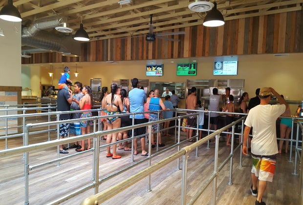 If you want to buy lunch, earlier is better than later. We have found wait times are five minutes or less at Longboard Grill and other food stands before noon, but steadily increase throughout the afternoon.