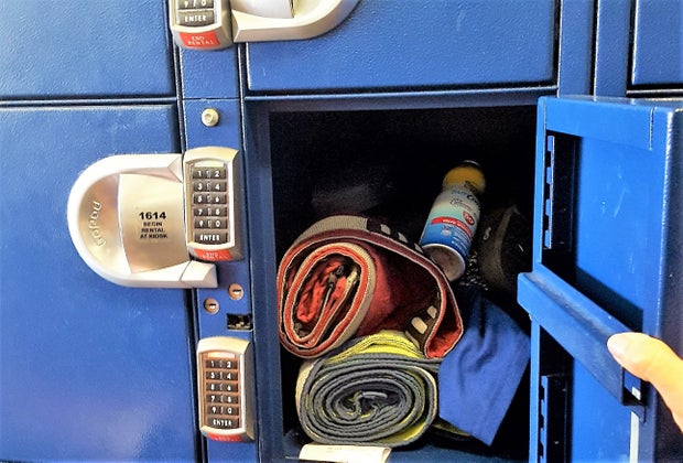 Lockers are available for rent. Several automated rental kiosks are set up in the Davy Jones’ Lockers area near the front entrance. The lockers come in three sizes and rent for $15 to $25 a day. How much can you fit in a locker? Well may you ask. We snapped photos of the kiosk and the lockers to help you plan ahead: