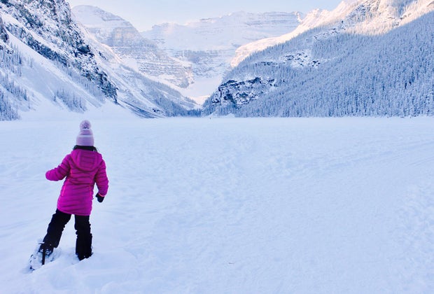 Snowshoeing across Lake Louise is a once-in-a-lifetime experience. Image courtesy of Ally Noel